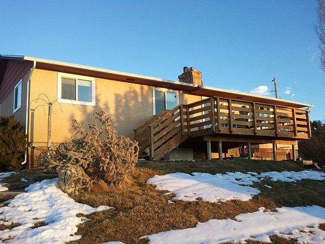 Only 15 minutes from Pueblo but once youre there youll feel miles away. Come home to over 13 acres of beautiful Colorado land. The main level features a spacious living room with a wood burning stove, kitchen, dining area, full hall bath, the master suite with a half bath, laundry area and two additional bedrooms. The huge finished basement has a full bath with a jetted tub. When you walk outside onto your deck and enjoy spectacular mountain views. Outside you can enjoy the fenced yard, the huge 24 x 12 shed plus additional shelter for animals and pets