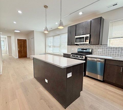 Available now, this beautifully renovated 3-bedroom, 2-bath top-floor unit in Arcadia Terrace offers both comfort and convenience. Recently gut-rehabbed, the home features hardwood floors throughout, a spacious living room, a modern kitchen with breakfast bar and dining area, granite countertops, and stainless steel appliances. The large bedrooms provide ample closet space, and the primary suite easily fits a king-sized bed. Additional highlights include in-unit laundry, central heating and air conditioning, a private deck, access to a shared yard, and one garage parking space included. The location is excellent, with Target, Starbucks, and Lincolnwood Town Center just minutes away for everyday shopping. Dining options abound nearby, including Wolfy's for Chicago classics, Bryn Mawr Breakfast Club for brunch, and Devon Avenue's diverse mix of restaurants and bakeries. Outdoor enthusiasts will enjoy Legion Park and the North Shore Channel Trail, perfect for biking, running, or a peaceful walk. Commuting is easy with Western and Peterson buses just steps away, quick access to the Brown Line at Rockwell or Lincoln Square, and major roadways like Peterson and Western.