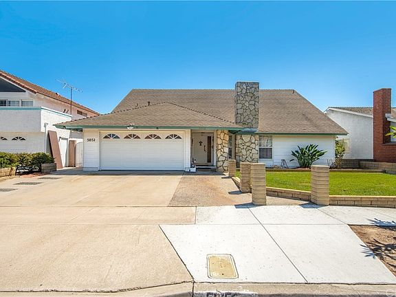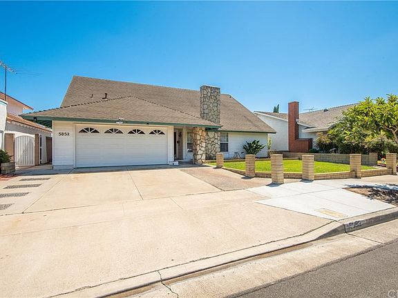 Opportunity knocks! "Greenbrook Space Maker 2", Highly sought for its main floor bedrooms and large family areas. This home features 6 bedrooms, 3 bathrooms, & approx 2,800 sqft of living space. The dramatic entrance boasts high vaulted ceilings, a step-down living room, & a fireplace. The large kitchen is open to the family room, has lots of natural light, and a nice view of the backyard. The formal dining room is ready for family meals. The master bedroom and bathroom, as well as 2 additional bedrooms and a hallway bathroom, are downstairs. Upstairs there are 3 more bedrooms and a bathroom. The upstairs landing has great space for a desk or homework station. Plenty of room to relax or entertain in the private backyard with a covered patio, lots of grass, & block wall fencing. Additional features include upgraded baths, some scraped ceilings, mostly dual pane windows, laminate flooring, central air conditioning, wet bar, and attic storage space. Direct access to a 2-car garage. Prime cul-de-sac location just steps from Oak Knoll Park & the Cypress Community Center. Highly Rated Cypress School District includes Morris Elementary, Lexington Jr. High, Cypress High, and Nationally ranked Oxford Academy (testing required). Priced under market, ready for upgrades to make it your dream home!