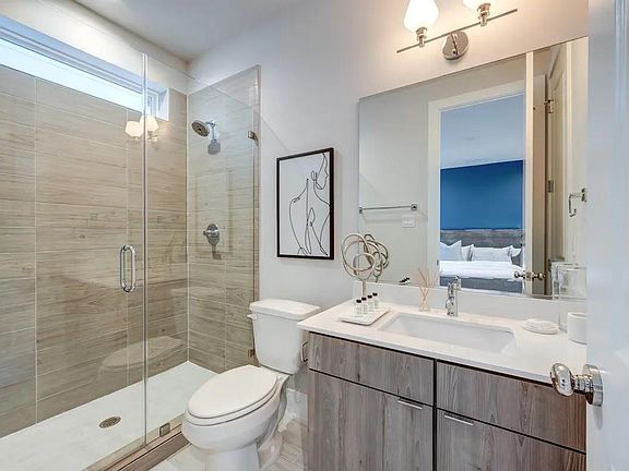 Sleek, stylish, and built to impress! This three-level stunner has a chic kitchen featuring trendy cabinetry, black stainless steel appliances, a spacious island, and under-cabinet lighting all flowing into an open living area with engineered wood floors. The second level offers a bright living/dining space with a covered balcony and beverage chiller, perfect for entertaining. Retreat to the luxe primary suite with soaring ceilings, a spa-like bath featuring a walk-in shower, freestanding soaking tub, dual sinks, and two expansive closets. Schedule your tour today!