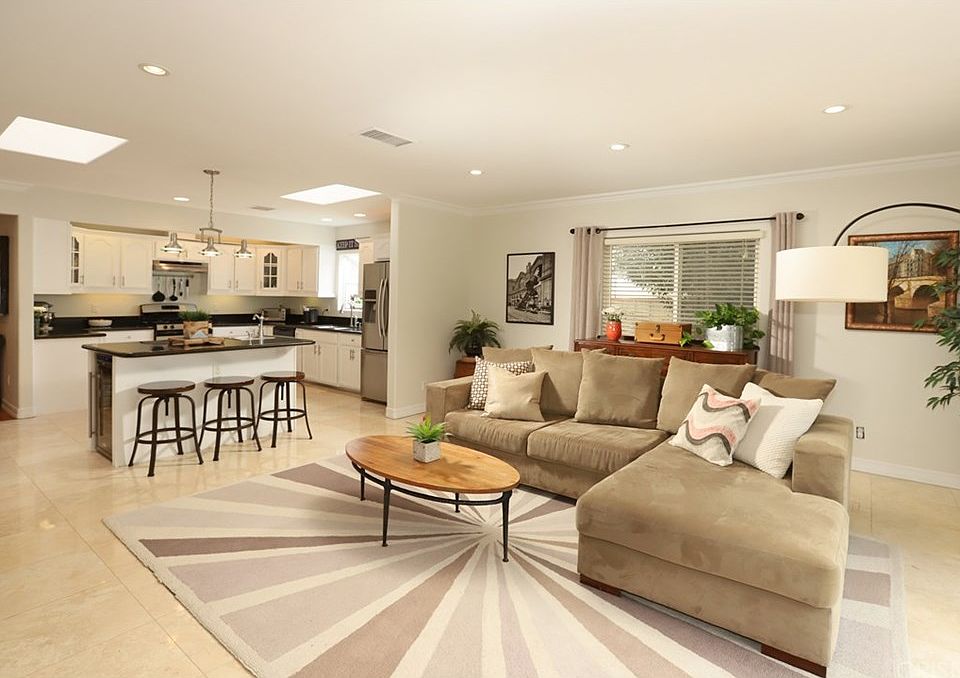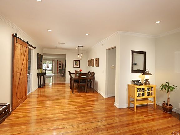 Beautiful 3 bedroom, 2 bath + office! Amazing natural sunlight bathes this contemporary home from sunrise to sundown via front & back windows & multiple skylights. This lovely home enjoys gorgeous hardwood & travertine floors & crown moldings throughout. Open floor plan includes high ceilings throughout living room,dining area,& large kitchen completely open to a spacious family room,perfect for today's entertaining lifestyle. This remodeled kitchen features skylights,granite counter tops,stainless steel appliances & a center island opening to the family room with sliding glass doors to rear yard.Massive master ste boasts hardwood floors, walk-in closet & large bath with skylight. 2 other bedrooms are generously sized,with gleaming hardwood floors & recessed lights. These secondary bedrooms share a full tiled bath with pedestal sink. Tranquil & private backyard includes large stamped concrete patio,manicured grassy area,white vinyl fence,organic nectarine & orange trees,fragrant vines,plus lots of greenery to provide your very own relaxing oasis. Front yard is also well landscaped with succulents, hedge, vines, grassy area & a PALM TREE! Bonus room with hardwood floors & crown moldings adds terrific living/work space. This room enjoys attic/storage space above. Situated on a quaint street close to walk/bike paths leading to multiple parks & Lake Balboa. Close to transportation,post office,Trader Joes & nearby grocery stores & restaurants on Ventura Blvd. A Must See!!