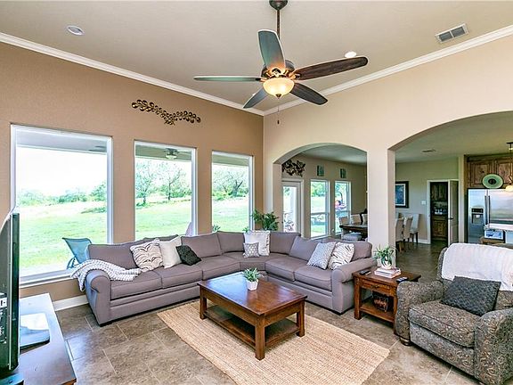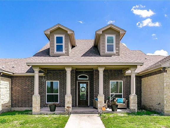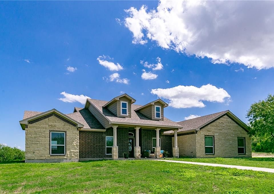 The most amazing unobstructed views await you at this beautiful and secluded home in West Lakes. Only minutes from Calallen! Spacious architecture, quality craftsmanship, and attention to detail is what you will find when you enter this contemporary home. Exterior and interior features an exquisite combination of textures including specialty stone, brick, rock & granite. Living area has soaring ceiling with large picturesque windows for stunning views. Open concept gourmet kitchen has all the amenities including large island bar and stainless appliances. Oversized master bedroom affords its own sitting area and the master bath is simply beautiful! Privacy hallway leads to two additional bedrooms & full bath and there is also a bonus office/craft room with french door entry. Come relax on the large covered back patio and enjoy peaceful morning sunrises & evening sunsets. Virtual drone video allows you to experience these breathtaking views.