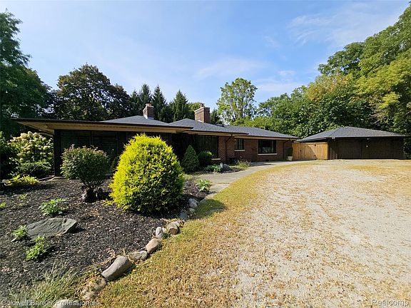 Beautifully updated and full of character, this well built brick ranch offers over 3,000 sq ft of spacious living — plus a bright 225 sq ft sunroom. Nestled on a wooded 1.5-acre lot in Lyon Township, this home combines privacy, space, and convenience. Large primary bedroom with en-suite bath and a thoughtful split floorplan, placing two additional bedrooms on the opposite side of the home. Ideal for family, guests, or a home office. This home blends vintage charm with modern updates, featuring original details, oversized windows for natural light, and a cozy, welcoming layout. Enjoy outdoor living in your private fenced backyard, or take advantage of nearby trails, bike paths, Atchison Park, local restaurants, shopping, and more. A long tree-lined driveway leads to a two-car garage, completing the retreat-like feel, all while staying connected to everything New Hudson has to offer.