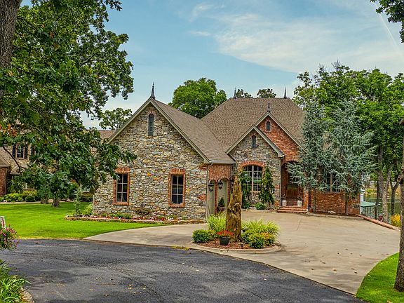This is absolutely a Gorgeous Waterfront Home. This was built as a dream home so it has lots of wonderful amenities and the high quality you Expect in a Langley Quality Home. Minutes from Grove and views of Grand Lake are what you see from the moment you step into this Beautiful home. So many details I hope not to leave any out! Kitchen has that fabulous stone arch over the 48'' commercial style Thermadore stove with double ovens, a pot filler and icemaker of course, a secret pantry, wood floors join the open concept living, kitchen, dining area's....does have a formal dining area open, but could be an office as well. Master suite on main floor, home has 3 fireplaces, walkout basement offers a kitchenette, 2nd laundry storage room, 2nd living area, 3 guest suites, 2nd powder bath,