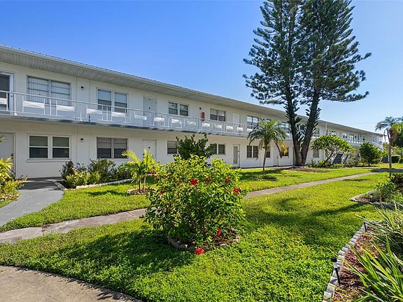 Welcome to this beautifully updated and fully furnished 2-bedroom, 2-bath condo located in the desirable Florian Building at Town Apartments North. Originally constructed in 1968, the building was completely rebuilt in 2011 following a fire in 2010, with modern upgrades including new electrical, plumbing, windows, doors, kitchen cabinetry, and more. Step inside to a spacious and comfortable layout featuring a Florida room with central heat and air, providing a serene space to relax just off the primary bedroom and kitchen. Enjoy the convenience of being just 20 minutes to Tampa International Airport, Gulf Beaches, and Downtown St. Petersburg. The active 55+ community offers a wide range of amenities, including: Large heated pool, Outdoor BBQ grills, Cornhole & shuffleboard, a Library and game room and organized activities including dances and social events. Whether you're looking for a full-time residence, seasonal getaway, or investment property, this unit offers flexibility — rentals are allowed!