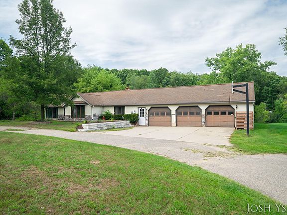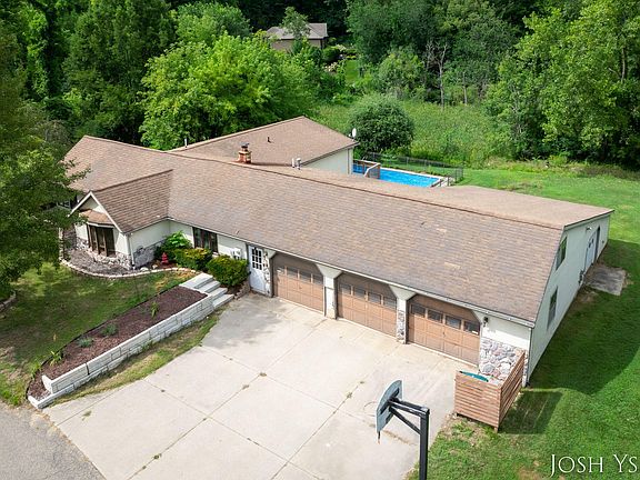 Unique property alert! This ranch, situated minutes from the heart of Ada, is on a gorgeous, private 2.2 acres with a huge garage an in ground pool and a 500 sq ft ADU! On the main level you'll find 3 bedrooms, 2 full baths, including primary ensuite, main level laundry, large kitchen with newer appliances, a 3 season room great for enjoying bug-free summer evenings and more. The partially finished lower level has an additional bedroom and bathroom along with a rec room with walkout access to the pool level patio. The garage has 3+ spaces with ample storage for vehicles, toys, and anything else you can think of. The former garage addition has been converted to a private studio ADU with mini split climate control and the original overhead door for outdoor access. Properties like this don't come along often; see it today!