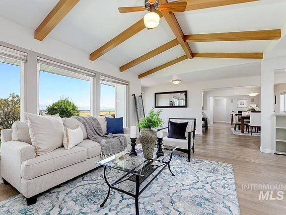 Gorgeous view of the whole valley and the Boise Front. This immaculate, well cared for home offers you privacy, room to roam and lots of space for all your "toys." Live the best of both worlds: wide open space outside and a cozy home inside. Enjoy cooking for family and friends in the updated kitchen or entertain guests out back on the large deck with expansive views of the city and mountains beyond. The home has brand new carpet and paint throughout the interior plus two new mini-split furnace/AC units in the bedrooms! When the cooler temperatures arrive you can sit by the fire in your living room while enjoying the peace and privacy of the countryside. Don't miss the fenced corral area for your horses and mules. NO HOA or CC&R's and NO NEIGHBORS out back! The land behind the home is owned by the city and zoned A-2 reserved for open space. Buyer to verify all information.