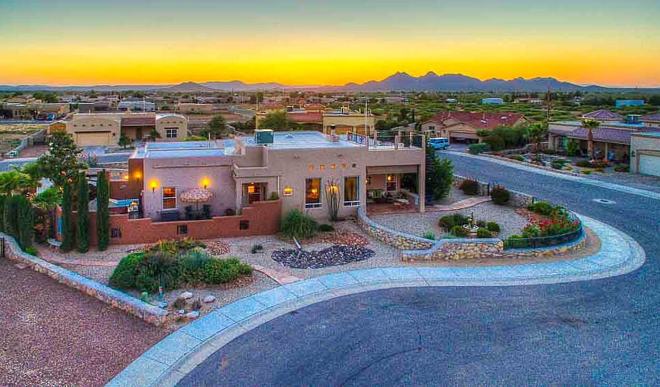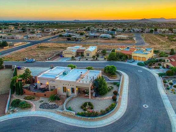 Pride of Ownership is so evident in this 2007 custom built 3bdm 2bath home w/3 car garage on a 1/3 AC on a culdesac. $10k in custom drapes, rods & shades. A multi-purpose room off the great rm can be den, office or formal dining. Enter through the extravagant landscaped courtyard w/palm trees, roses, magnolia trees, hot tub, gas grill, custom front door w/retractable screen. Great rm inc: vigas, kiva FP w/custom mantle, windows w/Organ Mtn views, French doors w/retractable screen to private porch w/retractable sun curtain & spiral stairs leading to rooftop deck. Kit: custom cabinetry & hutch, custom painted venthood, granite counters & backsplash, SS appliances inc: 5burner gas range/convection dbl oven. Mst bath: claw tub w/fixtures from England, 2 sinks from Mexico, marble counters & TV in both bathrms. Wheelchair accessibility throughout. Home inc: 6 skylights, 11 TV hookups, RV pad w/hookups, patio furn, front loading W/D, 2x6 const, drip system, elastomeric roof coat-'13, H2O softener, alarm.