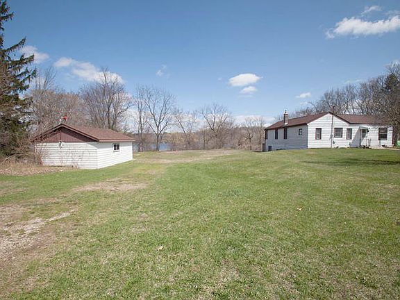 Enjoy Pike Lake in the loveliest of settings! Hard to find, private 4.88 acres of land with approx. 360 feet of frontage. Combination of woods, marsh, grass area and the lake. The year round county home has 3 bedrooms and 2 Full baths. Large kitchen. Exposed walk out lower level to the beautiful lot on down to the lake. 1.5 car detached garage for parking or storage along with a second smaller garage.. Pier included. City sewer. Unique property opportunity. SELLER WANTS OFFER!