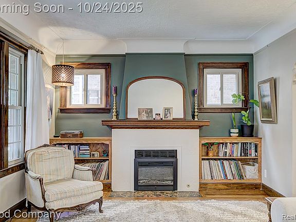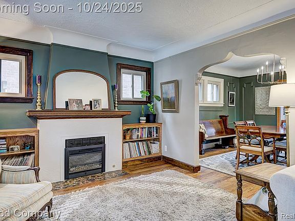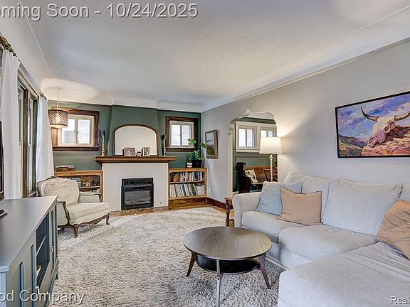 Matterport virtual walkthrough available on Homes. Move-in ready Tudor charmer in the heart of Dearborn offering classic character, smart updates, and a beautifully landscaped backyard retreat. A welcoming covered front porch leads into a warm living room with coved ceilings, rich wood trim, hardwood floors, and a cozy fireplace flanked by built-in shelves. An arched doorway opens to the elegant dining room with dramatic wall trim and into a bright sunroom that connects to a convenient half bath. The kitchen has been tastefully updated with stainless steel appliances, fresh wood cabinetry, white countertops, and a sleek subway tile backsplash. Upstairs, three comfortable bedrooms share a stylish full bath, with the spacious primary featuring a delightful window bench. The partially finished basement adds great additional space with a kitchenette, laundry area, and extra storage. Step outside to a fenced backyard oasis complete with string lights, pergola seating, lush gardens, and a detached garage. Welcome Home!