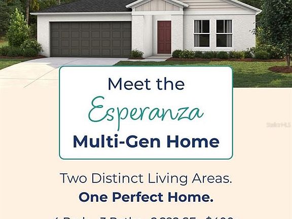 Under Construction. BELOW MARKET INTEREST RATES with use of Seller's Preferred Lender. Meet the Esperanza, a single-story, multi-generational home designed for modern living with flexibility and comfort. This 4-bedroom, 3-bathroom, 2-car garage home features a separate multi-gen suite with its own bathroom and kitchenette, ideal for extended family or guests. The spacious layout offers distinct areas for gathering and relaxing, including an open-concept living and dining space paired with a thoughtfully designed kitchen featuring quartz countertops, stainless steel appliances, and smart home technology for everyday convenience. With smart design and stylish touches throughout, the Esperanza balances independence and togetherness, providing room to grow—together. Here you’ll enjoy quick access to US-27 and I-4, connecting you to all the best Central Florida has to offer. From everyday essentials to outdoor adventures, you’re just minutes from shopping, dining, and local favorites like Posner Park and Lake Eva Community Park. Enjoy extra value alongside a collection of stylish, open-concept floor plans with modern finishes, curated design packages, and thoughtful features included at no extra cost. Images shown are for illustrative purposes only and may differ from actual home. Completion date subject to change. Contact or make an appointment for more details on interest rates.