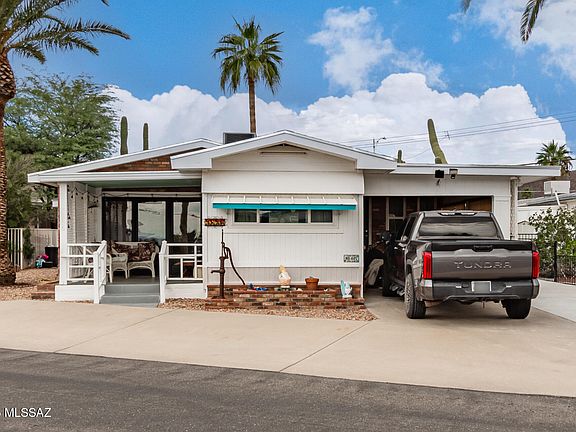 A charming 2 bed, 2 bath home in Tucson Estates is now for sale! Featuring a low-care landscape, carport parking, and a welcoming front porch, it's sure to be the home for you! Inside you will find sizeable dining & living areas w/elegant wood-look flooring and custom palette throughout. The eat-in kitchen comes equipped w/painted cabinetry, plenty of counter space, and built-in appliances for all your home cooking needs. The primary suite showcases direct outdoor access and a private ensuite for added convenience. Also including a quaint backyard patio where you can sit back and enjoy a relaxing evening, this home is a true gem! Act now before it's gone!