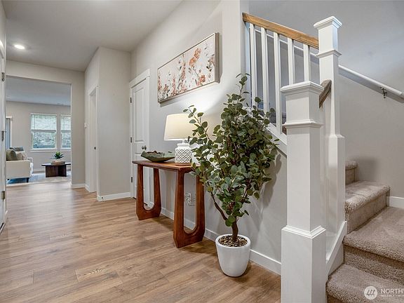 Stunning modern home blending style, space, and convenience. Filled with an abundance of natural light, high ceilings, and a seamless flow. Open concept living space with a cozy gas fireplace, large dining area and a sleek kitchen w/ quartz countertops, stainless steel appliances, and a spacious island. Upstairs, enjoy the comfort of a grand & luxurious primary suite with a walk-in closet and spa-like 5-piece bath. Three more generously sized secondary bedrooms offering flexibility for guests, work, or play. Laundry & utility room located just off of the primary for convenience. Low maintenance & fully fenced backyard with a bonus; no neighbors behind you! Ideal location; minutes from SR16, ferries & amenities.