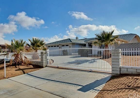 Prestige,location, luxury and limitless enjoyment in this 5 bedroom, 3.5 bath pool home in Yucca Valley's finest area of Upper Sky Harbor. Concrete tile roof, awesome pool and spa, impeccable interior, natural gas, HVAC and 2 ducted MasterCool evaporative coolers... security shutters at all openings and automatic gates at 2 access points, huge 3-car finished garage. Walking distance to Machris Community Park AND to Black Rock Campground of the Joshua Tree National Park. This home is one of a kind and radiates with class.