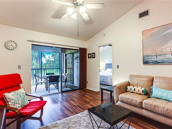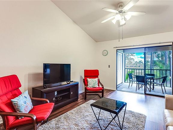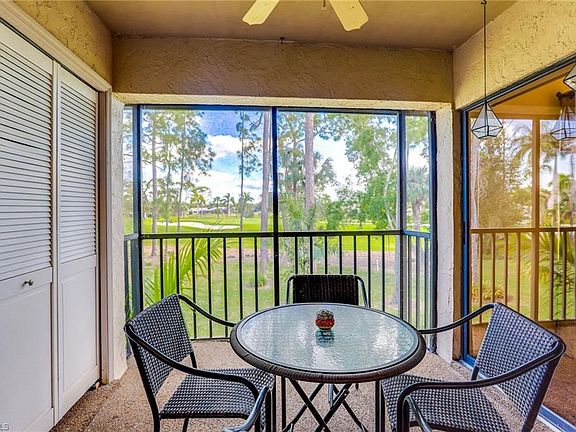 A Naples address for less than $125,000. This two bedroom two bath second floor condo is located in an older Lely community. The rear of the unit has a southern exposure and overlooks a green on the Royal Palm golf course. The property is an excellent investment for seasonal visitors or full-time residents. The unit has new carpet in the bedrooms and laminate flooring in the great room. There is assigned covered parking and a small lockable storage area adjacent to the parking spot.