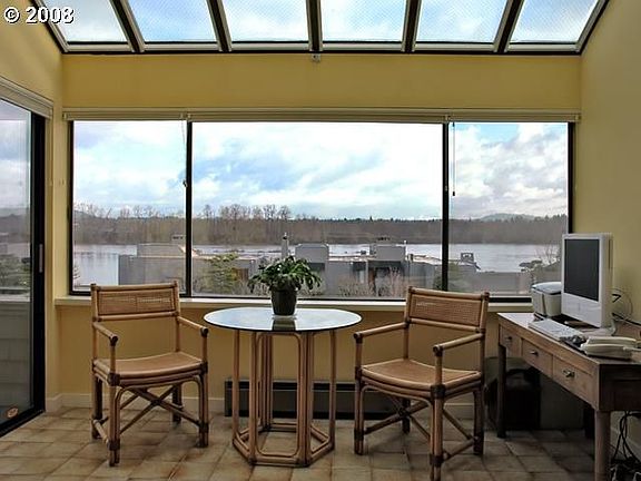 Sophisticated,spacious & serene-this John's Landing condo offers Mt Hood & River views.Steps to river,Starbucks, restaurants & shops.Minutes to town & OHSU. Quality built as a condo - Unique 1 level, 2BRs, Sunroom, Fpl, sound system, built-ins, new appliances & surfaces. 200 SF view deck. Secure parking. One owner. Meticulous! A rare opportunity.