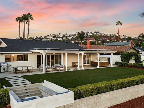 This stunning single-story home, situated on a 0.26-acre parcel in a serene canyon setting within the coveted Princess Del Cerro neighborhood, offers a perfect blend of luxury and comfort. The warmth of hardwood floors guide you through the beautifully renovated interior, featuring 5 bedrooms, 2.5 bathrooms, and flowing open living areas that radiate sophistication and ease. A separate sunken family room with a cozy fireplace adds to the inviting atmosphere. The chef's kitchen is a culinary delight, with abundant cabinetry, a center island, pantry, breakfast nook, and stainless-steel appliances—all expertly designed to make meal prep a breeze. The primary suite, thoughtfully positioned away from the secondary bedrooms, boasts 3 closets, including a walk-in, and a luxurious, modern marble bath complete with dual vanities and an oversized shower. Seamlessly blending indoor-outdoor living, the large accordion doors open to an expansive backyard showcasing a spacious covered patio with a spa, sprawling turf, and a fire pit lounging area. This outdoor retreat is ideal for entertaining or enjoying quiet relaxation. With its prime location near Princess Del Cerro Park, top-rated schools, convenient freeway access, and a wide variety of shopping and dining options, this home promises to provide a lifetime of great memories!