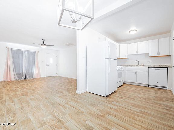 This updated single-story home features three bedrooms and one full bathroom with 936 square feet of living space. Built in 1956, it rests on a corner lot with no HOA, offering ample outdoor space for relaxation or future enhancements. The classic layout includes a bright living area, a kitchen with updated appliances, a dining nook and a covered patio extending to the fenced in backyard. The attached 2 car garage and side gate allows for plenty of parking. The mature shade trees add practical and comfortable living elements. Close to DMAFB, grocery stores, restaurants, hospitals and the Park Place mall.