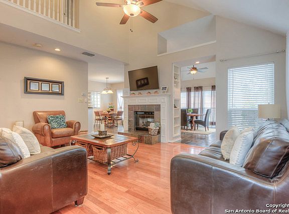 Charming home in Spring Creek Forest! This home boast of character with tastefully upgraded features throughout. The high ceilings and open layout offer a spacious feel w/lots of natural light. Cozy two-sided fireplace viewable from living and dining room. Kitchen offers beautifully selected granite countertops, tastefully paired with a modern backsplash and stylish fixtures. Adorable side deck perfect for enjoying the outdoors! Carpet in the bedrooms only. Updated bathroom sinks, countertops, & fixtures.