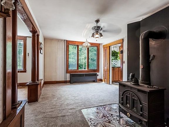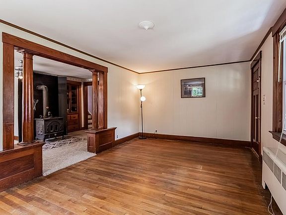 This lovely cape features 1920's charm and details throughout. The enclosed front porch is perfect for curling up and reading on a summer day. Meanwhile, the wood stove will keep you warm on those wintry nights. Hardwood floors flow throughout the home. The country kitchen with features a tile backsplash, recessed lighting and extra cabinet space. Spacious full bath downstairs with tile surround. There are 4-5 bedrooms total and the upstairs bedrooms boast spacious walk-in closets. The full basement with interior access is great for storage and a work area. A wonderful backyard and detached 2 car garage are additional perks. Great Walpole location and highway access.