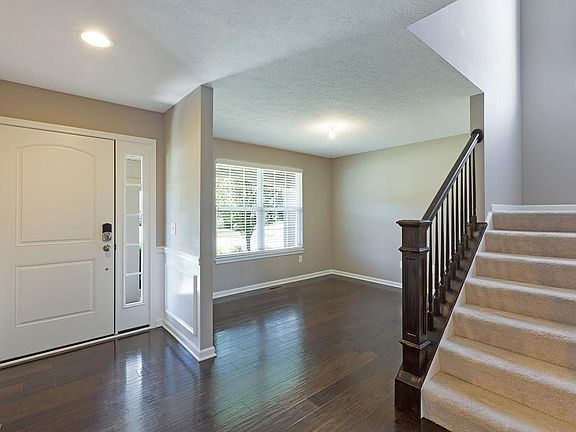 Looking for new construction but dont want to wait to build? Here is the answer: Come see this beautiful newer colonial built by Drees Homes with the look of today. There are hand-scraped engineered wood floors on most of the main level. The living room/office is by the front door yet tucked away if you are working remotely. This open concept combines the family room, dining room and kitchen. There is a gas fireplace with stone accent in the family room and a separate dining area. The kitchen is awesome with upgraded off white cabinets, tiled backsplash, a large center island with a breakfast bar, stainless appliances to include a cooktop and double ovensperfect for entertaining. There is a mud room as you come in from the garage and a first floor laundry. The master suite is on the first floor with a spacious bedroom, walk in closet and glamour bath with double vanities, a separate shower and a soaking tub. There are three additional generously sized bedrooms and a full bath on the second floor. Plenty more space in the finished lower level with large windows allowing a lot of natural light, and it is plumbed for a bath. This house is truly move in ready. Almost forgot, easy living as lawn care and snow removal are included in your monthly fee of $150 so you can really enjoy your off time.