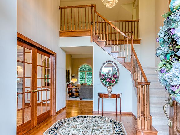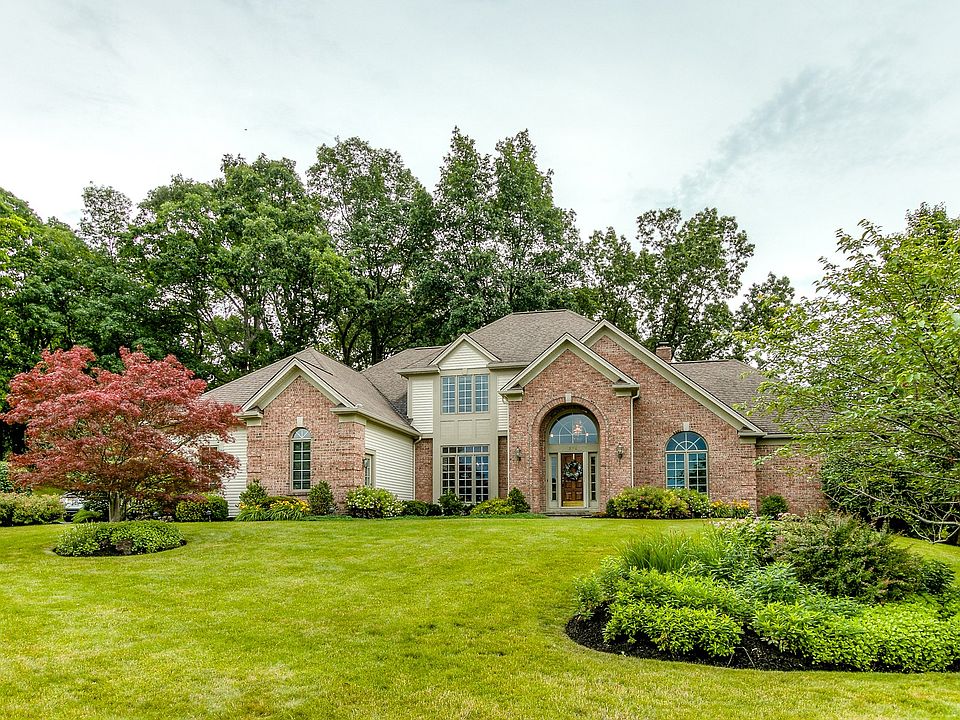 1.33A. Elegance & charm abound here. 3 bedrooms (4th bedroom potential in walk out basement), 3 full bath home with a dramatic 2 story foyer, magnificent great room with wood burning fireplace. Extensive use of cherry in the built ins, staircase & chair rail. The white Brookhaven by Woodmode kitchen features granite counters, stainless appliances, hardwood floors and island. The kitchen is wide open to the great room. Also featured is a formal dining with French doors, den & 1st floor master with whirlpool and separate shower. You can relax and enjoy the beautiful views to the rear yard through the stunning wall of palladium windows. The full walk out basement offers enormous potential living space. There is a covered porch at the walk out and loads of privacy here for your enjoyment.