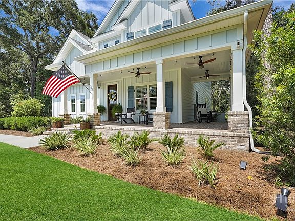 Immaculately maintained 4BR/2.5BA home with loft in the highly sought-after North Enclave section of the Waterways community! Situated on a spacious .41-acre cul-de-sac lot, this like-new home features a main-level primary suite with a spa-like bathroom and walk-in closet. The beautifully decorated interior offers GE Café appliances, plantation shutters, Low-E windows, and an open floor plan with a versatile loft. Enjoy outdoor living with a charming front porch (3 ceiling fans), a screened porch, and a custom paver patio with firepit. The fully fenced backyard backs to a wooded area for added privacy. Additional features include gutters, a 2-car garage, and green space directly across the street. Located in a premier coastal community known for its amenities, trails, and natural beauty. Truly move-in ready!