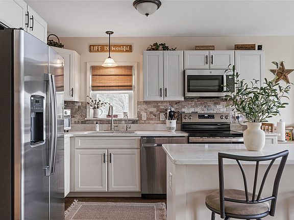 Here’s the home you’ve been waiting for to hit the market! Step into this modern cape cod that exudes a blend of cozy charm with luxury. Featuring an open-concept layout, cathedral ceilings, & high-end finishes. Fully remodeled with intent to be a forever home. The custom kitchen includes soft-close cabinets & a stunning backsplash, opening to a dining area & a living room filled with natural light from the deck, offers breathtaking views. Two bedrooms & a beautifully redesigned full bath are located on the main floor, with a en-suite & loft space upstairs. The lower level features a spacious family room, a second kitchen, & sliding doors that walk out to the backyard. Endless updates include a covered front porch, new roofs on the house & heated garage, Pella windows, sliding glass doors, luxury vinyl flooring, mini split system, water osmosis system, Arctic Bear water softener, fireplace, whole-house air exchange, & Trex decking. Don’t miss your chance to make this your new home!