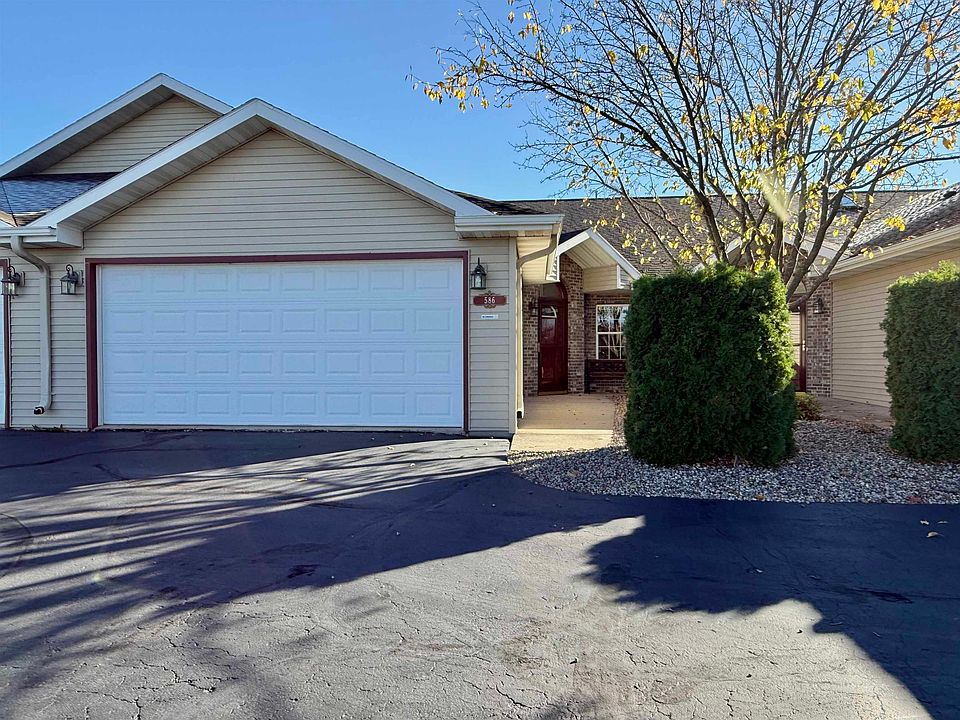 Give yourself a break from lawn care and snow removal when you call this condo home! This zero entry 2 bedroom condo offers many accessibility features such as wide doorways, step in shower, low pile carpeting, and main floor laundry. The cathedral ceilings and skylight make this good sized unit feel even larger. Full basement with plenty of room to add finished square footage to your property and is already stubbed for a 3rd bath. Attached 2 car garage, forced air heating and central air conditioning. Condo fees $133 monthly and include snow removal and lawn care. Flooring and cosmetic updates are needed.