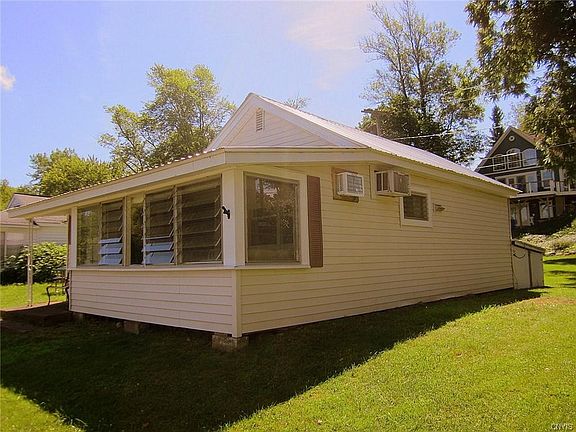 The perfect get-away or Summertime home is this cozy cottage situated right in the "front row" overlooking the spot where beautiful Cross Lake and Seneca River converge * This 3-season camp sleeps four, features a BIG eat-in Kitchen (with appliances), a full Bath, and a heated Florida Room with a fabulous waterview * Bonus updates: electrical service, hot water tank, easy-care vinyl siding and metal roof * Two electric wall furnaces & A/C window units stay * Metal roll-away dock is included in this sale * Private well water is not "drinkable" - but fine and very convenient for everything else (owners bring drinking water in themselves) * The Association Fee of $195 provides "members only" access to 2,000' of waterfront, private dock space, beaches, park-like picnic areas, and maintenance of all common areas * Boaters, campers & fishermen delight - only 15-25 minutes from Syracuse, Auburn, or Baldwinsville *