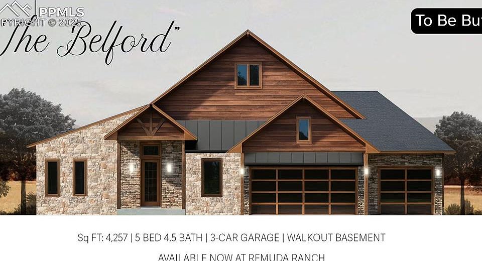 Introducing The Belford by Valiant — a masterfully designed residence that blends modern sophistication with timeless Colorado character. Poised within the rolling hills and red-rock vistas of Remuda Ranch, this proposed new build is crafted for the luxury homebuyer who values refined design, functional space, and the serenity of nature. From the moment you arrive, The Belford impresses with its inviting covered entry and striking architectural lines that speak to both elegance and strength. Inside, the open-concept main level unfolds seamlessly — a spacious great room, gourmet kitchen, and dining area designed for effortless entertaining and comfortable everyday living. Vaulted ceilings, designer finishes, and abundant natural light create an atmosphere that feels expansive yet warm. The primary suite is a true retreat, offering a spa-like bath and generous walk-in closet. Thoughtful separation of additional bedrooms ensures privacy for family or guests, while flexible spaces easily adapt to your lifestyle — whether as an office, gym, or creative studio. A 3-car garage provides space for vehicles, outdoor gear, and hobbies, while the optional full finished basement opens the door to endless possibilities — a home theater, wine room, or extended guest suite. Situated on a large lot with panoramic views of foothills, rock formations, and open skies, The Belford brings the beauty of the outdoors to your doorstep. Residents enjoy immediate access to scenic trails, parks, and open space, creating a lifestyle grounded in nature yet close to Castle Rock’s premier dining, shopping, and entertainment. Built with high-quality finishes and energy-efficient construction throughout, The Belford embodies the craftsmanship, comfort, and distinction that define Remuda Ranch living. Come home to sophistication. Come home to The Belford at Remuda Ranch.