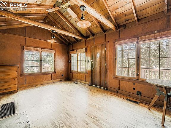 Charming 1920s Mountain Cabin! Step back in time with this 2 bed, 1 bath, 677 sq ft cabin, where vintage charm meets modern comfort. Nestled in a quiet, storybook neighborhood less than 20 minutes from Colorado Springs and just 10 minutes to Woodland Park, this cozy retreat offers both convenience and tranquility. Inside, you’ll find hardwood floors, original wood interiors, and period hardware that preserve the cabin’s timeless character. Thoughtful updates include a high-efficiency furnace (2023), upgraded electrical, stackable washer/dryer, and gas range. The inviting stone fireplace and built-ins add warmth and function throughout. Enjoy your morning coffee on the composite deck with mountain views, or go for a hike on Mount Esther Trail, which is only 0.5 miles from this home, and takes you into Pike Nation Forest! Storage is abundant with a lower-level, exterior access space and carport. Please note that this property will be conveyed in its current condition, sold as-is, with no seller repairs or warranties. Whether you’re looking for a starter home, vacation getaway near Pikes Peak, or income-producing VRBO, this cabin checks all the boxes. Nearby is access to Pikes Peak highway, Garden of the Gods, endless hiking, and biking trails, it’s the perfect mix of nature, history, and comfort. Don’t miss this rare opportunity to own a piece of Colorado’s mountain charm! *Assumable* Contact agent for specifics!