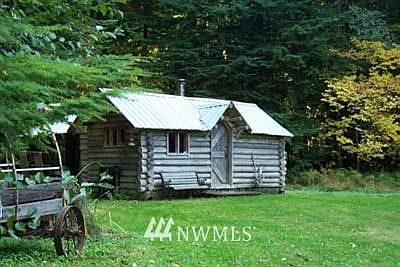 Hand-built log cabin. Tucked into a beautiful forested setting at the edge of a meadow. Take a step back in time when entering this charming 2 room cabin. A Vermont Castings woodstove warms the cozy main room: living room, eating area & a compact efficiency kitchen with apartment size oven/range, refrigerator & microwave. All wood interior. Cabin served by private shared well, power & composting toilet, no septic. Located in the heart of Greenwater, 18 miles to Crystal Mtn Ski Resort.Get away