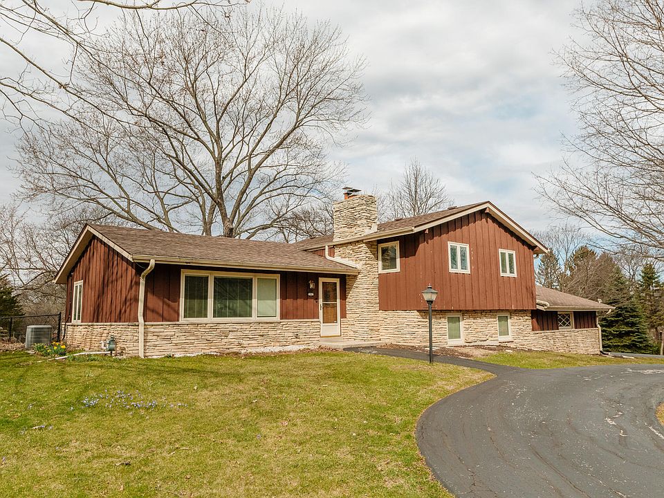 Large home on a beautiful lot with large shade trees and walking distance to Whitnall park. This multi-level home offers a 3 car garage, with In-laws quarters on ground level floor to garage, beautiful Stone fireplace, recently finished basement, 4 large bedrooms on the upper floor, recently remodeled baths, newer carpet, newer windows, refinished hardwood floor, large rooms, circle drive and back yard patio! This is a multilevel home with different heat zones for each level, floors and ceilings are heated for the most even heating!
