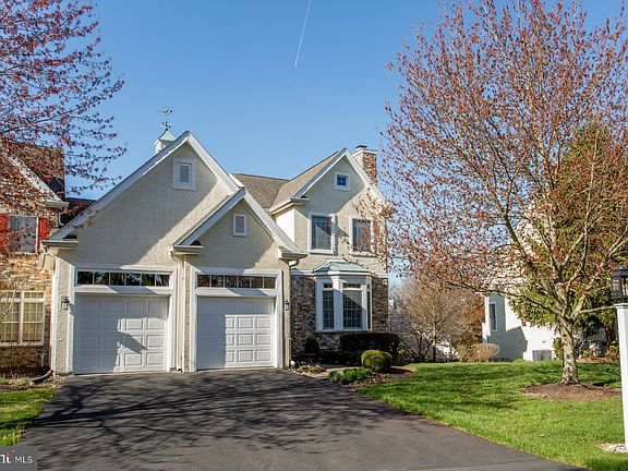 A very rare opportunity for a home in the highly coveted Stone Ridge community of Buckingham Township. These homes do not often become available but here’s your opportunity for an exquisitely upgraded Carriage House where luxury, comfort and one of the most desirable views in the neighborhood converge. It all begins as you enter the front door with full transom and shuttered sidelights. You are immediately greeted by the beautifully finished hardwood floors which extend throughout the entire first level. The spacious living room on your right is highlighted with large bay windows on the front and additional windows on the side, washing the area with airy natural lighting. The open floor plan continues to the dining area with yet another set of bay windows making this a wonderful place for your formal dining. The gourmet kitchen features a large island with a gas cooktop, an overhang for seating, extensive storage space and custom artglass pendant lighting. Meal preparation and entertaining will be a delight with the leathered granite countertops, tiled backsplash, extensive cabinetry and stainless appliances. The kitchen is wide open to the large great room with a two sided gas fireplace, vaulted ceiling and skylights, and sliders to the deck. The flow of this floor plan not only provides comfort and convenience (only 3 steps up from the oversize two car garage with storage) but is exceptional for gatherings and entertaining. And while you are enjoying outdoor dining under the awning on this deck, the views will astound you. In the Spring you will enjoy watching the hot air balloons take off from the adjacent Peddlers Village. The main level also includes the primary bedroom suite with cathedral ceiling and featuring barn style French doors to the large walk-in closet with organizers plus a second large closet. You will be delighted by the large primary bath with double vanity and the expanded walk-in frame less glass shower with beautiful floor to ceiling tile work. This bedroom suite also includes a sitting room (currently set up as home office space) with the second side of the gas fireplace and amazing views of the meadow and it’s wildlife, pastoral pond, and Peddlers Village. The main level also includes a completely renovated powder room and a laundry room if you should decide to move the laundry up from its current location in the basement. Upstairs you will find a spacious loft/seating area overlooking the great room and the foyer, as well as two additional large bedrooms – one en suite with full bath and yet another full bath in the hallway. Downstairs the daylight walk out space is beautifully finished with wainscoting, built in bookshelves and recessed lighting, providing even more space for relaxing and entertaining. There is even an additional guest bedroom. The unfinished section provides extensive storage space. And to enjoy the outdoors even more, sliders take you to the new covered paver patio providing a secluded and extremely comfortable area. Walking distance on the community’s own walking trail to the shopping, dining and entertainment of Peddlers Village. Central Bucks schools. Make your appointment today to experience this wonderful property.