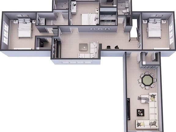 Wooded acresRear deckOpen layoutExpansive loft areaDining areaLoft area upstairsGreat room