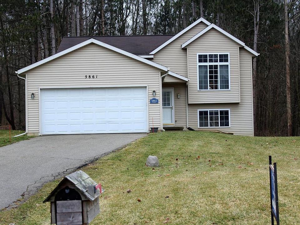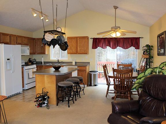 3/4 acres bordered by woods & pond with move-in ready 4 bedroom, 2 bath home. Only $165,000! The main level features an open floor plan with kitchen, dining, & living areas under a cathedral ceiling. All have easy access to the slider that leads to the deck overlooking the pretty yard. The kitchen features ample cabinetry & counter space including pull outs and racks. All appliances are included. There are also two bedrooms down the hall, two closets, & a clean family bath with access from both the hall & Master bedroom. Down you will find a super-large room that seller's prefer to use as the Master. It would also make the perfect family/rec rm with a slider to the back yard. There's also a nicely remodeled full bath, another bedroom, & laundry/storage/utility rm. Yard has a nice blend of grass & trees to complete this package.