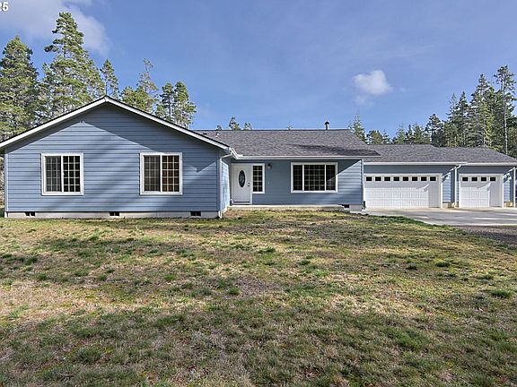 Must See to Appreciate! This stunning 4-bedroom, 2-bathroom home sits on nearly 5 level acres just blocks from the world-renowned Bandon Dunes Golf Resort. Quality craftsmanship and thoughtful upgrades are showcased throughout — from the granite kitchen countertops and solid hardwood doors and trim to the recessed lighting, high-end carpet in the bedrooms and hallway, and beautiful laminate flooring in the main living areas. An additional single-car garage was added to create an attached, oversized three-car garage with heavy-duty, reinforced doors. Enclosed soffits enhance durability and curb appeal, while the 30-year roof provides lasting peace of mind. Perfectly situated between Bandon and Coos Bay, this property offers easy access to both towns and is just minutes from Whiskey Run Beach, where you can enjoy the tranquility of the Oregon coast. With 4.82 private acres, there’s plenty of space for entertaining — invite friends and family to bring their RVs, with two full hook-ups already in place. Need a shop? No problem! There’s ample room for your plans, with water and power readily available. Experience the best of coastal living — space, style, and serenity all in one exceptional property.