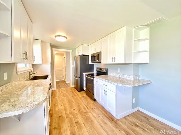 Welcome home to this gorgeously remodeled home with 4 bedrooms & 2 separate living areas all on one level! Everything inside new in 2019, including black stainless appliances and your own private hot tub on the back patio to enjoy in the sun or under the stars! Excellent layout for mother-in-law wing with it's own entrance, bath and kitchenette. Detached garage/shop has room for all your projects. Abundant parking for RV, boat or friends. Quiet, friendly neighborhood close to conveniences.