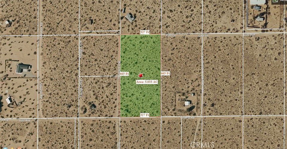 Tucked in Landers, this 5-acre parcel offers wide-open desert views plus a small 1-room cabin (approx. 400 sq ft) in need of TLC for weekend projects or storage. Public water is available through the local agency; buyer to confirm meter and connection details. Power lines are in the area; buyer to verify. Zoning is HV/RL (Rural Living) in San Bernardino County—great space for a home, shop, or animals, subject to County rules. The cabin appears to be a recreational structure and may not be a permitted dwelling; buyer to investigate permits, septic, and habitability. Western Joshua Trees may be present and are protected—check requirements before clearing or building. Easy dirt-road access off Cubero Rd, minutes to Landers services and a short drive to Joshua Tree and Yucca Valley. A simple, usable canvas for your desert retreat.