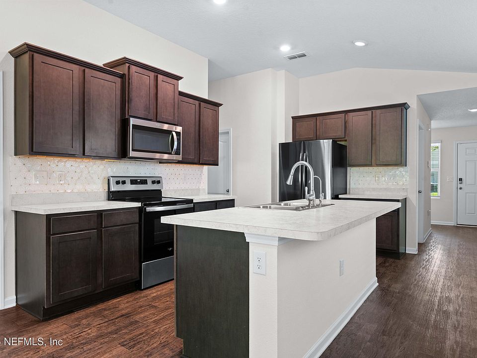 - Included: Electric Cooktop, Electric Oven, Microwave, Refrigerator