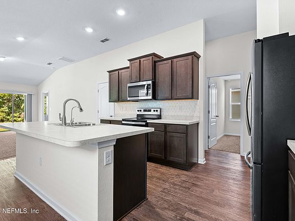 Welcome home to this beautifully cared-for 3-bedroom, 2-bath residence on Jacksonville's Westside! Ideally situated just minutes from I-295 and NAS JAX, this home offers the perfect blend of comfort, convenience, and functionality. Step inside to discover an inviting open floor plan filled with natural light—perfect for everyday living or entertaining guests. The spacious living area flows effortlessly into the dining room and kitchen, where you'll find plenty of cabinet space and a breakfast bar for casual dining or morning coffee. The split-bedroom layout provides privacy, with a generous primary suite featuring an en-suite bath and walk-in closet. Two additional bedrooms and a full guest bath complete the interior, offering plenty of space for family, guests, or a home office. Enjoy the outdoors in your private backyard, or take advantage of the attached 2-car garage for convenient parking and extra storage.
