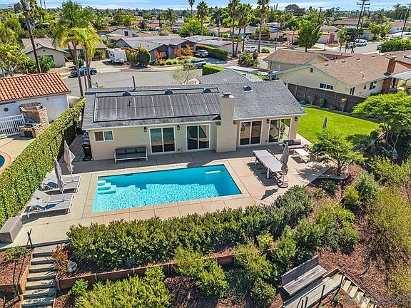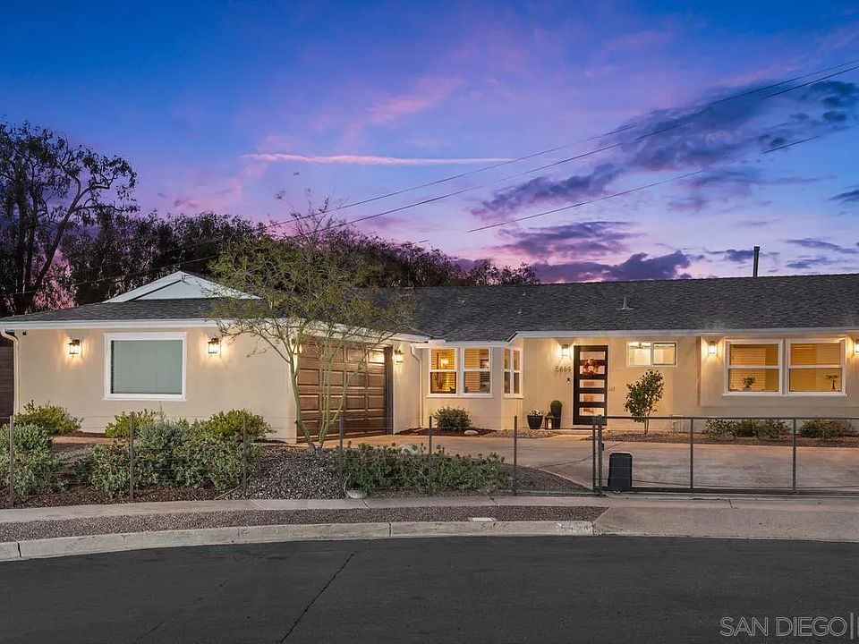Rare find! 11,100 sqft canyon view lot sited in a cul-de-sac on the west end of University City. Ample outdoor space with a yard, solar heated pool and garden. Beautifully updated open concept filled with natural light. Chef’s kitchen features wood cabinetry, quartz counters, induction cooktop, stainless steel appliances, and a 9’ island. The living space includes integrated 5pt surround sound, projector, screen, and bluetooth equipped sound system. Offering two thoughtfully designed primary suites and a flexible 3rd bedroom. Fully fenced with an automatic driveway gate for added privacy and security. Centrally located, close to beaches, shopping and restaurants.