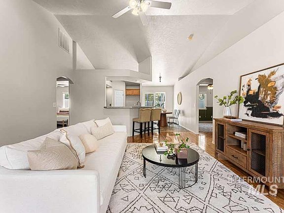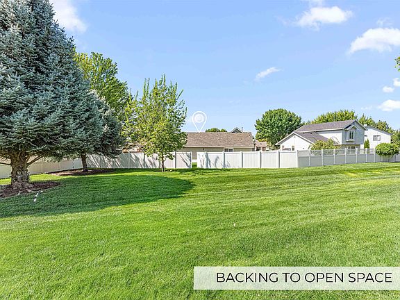 Stunning single-level home with an upstairs bonus room, nestled on a quiet South Boise cul-de-sac with direct access to open space. Inside, vaulted ceilings and a cozy stone fireplace create a warm, inviting atmosphere. Fresh interior paint and hardwood floors add a modern touch, while the kitchen features stainless steel appliances, an eat-in dining area, and seamless access to an extended patio and spacious backyard. The primary suite offers a walk-in closet, dual vanities, and private patio access. A split-bedroom layout enhances privacy and comfort, while the oversized upstairs bonus room is perfect for game nights or entertaining. Outdoors, enjoy a storage shed, charming vegetable garden, and plenty of space to relax. The garage impresses with epoxy flooring. All this, with the convenience of South Boise living - minutes from I-84, shopping, and top-rated schools.