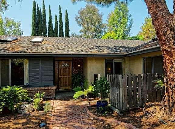 Enchanting ONE STORY family retreat in Agoura Hills adjacent to million plus homes & walking distance to Yerba Buena Elementary & Lindero Canyon Middle School. The open breezeway on this model has been enclosed as a 4th bedroom & adds additional sq. footage! Gorgeous VIEW of Lady Face Mountain compliment this very PRIVATE setting. Abundant w/nature, the sounds of birds singing, & a Zen-like garden off the master suite. Mature Pine & Birch Trees, gorgeous Ornamental Strawberry Tree in the front yard. A wonderful balance of both shade & sun. Peaceful & Tranquil. Children's playhouse in the backyard complete w/covered roof, sliding doors & bay windows! The inside of the home feels remarkably light, bright & has a very open & spacious feel. The living room is a wonderful space featuring high ceilings w/new skylights, & an amazingly cozy & dominant river rock fireplace. The kitchen boast oak cabinets, tile counters & separate island. Hard wood French Doors & windows invite the outside in & compliment this charming home. Smooth ceilings & new paint throughout, new laminate floors, some new landscaping, separate laundry. Close to shopping, restaurants, entertainment, parks & beaches. No hoa. Truly a very unique & private setting in an excellent location!