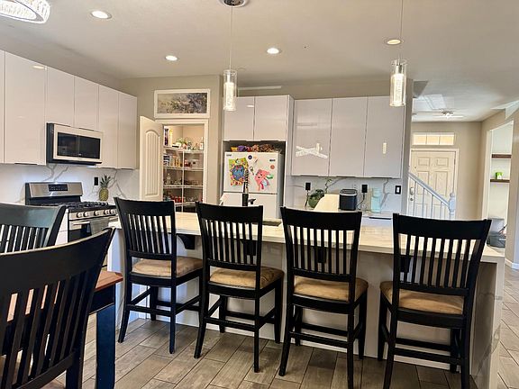Welcome to this beautifully upgraded home in the award-winning Clovis Unified School District, offering modern style, comfort, and energy efficiency. This spacious layout includes 4 bedrooms, 3 full bathrooms, a main-floor den, and an upstairs loft. The modern kitchen features sleek Italian cabinets, a granite waterfall countertop, stainless-steel appliances, and a wine refrigerator. The open entry flows into the main level, which includes a bedroom and full bath plus a versatile den ideal for a home office, gym, or playroom. Upstairs, a roomy loft provides additional living space. Energy-efficient upgrades include solar panels, attic fans, and low-maintenance synthetic landscaping. Enjoy the outdoors on the covered patio and porch. The standout garage offers epoxy flooring, a full second kitchen, air conditioning, and overhead storage perfect for hobbies or extra workspace.