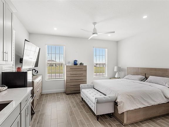 Welcome to 5867 Sierra Crown Street, a one-of-a-kind Palmer Model situated on a premium conservation homesite in the highly sought-after Bargrove Estates community in Mount Dora. Located at the rear of the neighborhood for ultimate privacy, this home boasts 6 spacious bedrooms, 6 bathrooms, and over 4,600 square feet. This home is extensively upgraded inside and out, and nothing like the builder offers it! The home features a true open-concept great room and gourmet kitchen configuration, featuring extended custom cabinetry and upgraded luxury appliances. Every detail has been elevated, from new flooring throughout (no carpet throughout), including luxury vinyl plank on both staircases and through all of the upstairs. The home also features upgraded lighting fixtures and recessed lighting throughout. A standout feature of this property is the multi-generational in-law casita, complete with its own private entrance, kitchenette, large walk-in closet, and a fully upgraded en-suite bathroom featuring a frameless glass shower. Upstairs, you’ll find an oversized gathering room with custom built-ins and extended quartz countertops, creating the ideal space for entertaining, relaxing, or game nights. The primary suite is oversized and offers exceptional space, with an additional sitting area, which can also function as a home office. The primary en-suite features split vanities, a large soaking tub, an enclosed shower and 2 large walk-in closets. Four additional guest bedrooms and 2 additional bathrooms and a thoughtfully designed laundry room with built-in cabinetry complete the upper level. The home also features a two-car garage with finished flooring, and already under HVAC, making it perfect for a gym, office, or hobby space. A whole-home water softener and filtration system come with the home. The driveway has been extended, and the outdoor lighting upgraded to enhance curb appeal. Every bathroom in the home has been upgraded with tile extended to the ceiling, adding a custom finish throughout. A craft room/flex space on the main floor adds even more functionality. The backyard is primed and ready for a future pool installation. Bargrove Estates offers a community playground and greenspace, and is located just off Highway 441, minutes from historic downtown Mount Dora and all of its charming shops, dining, and events. With easy access to SR 429, commuting to downtown Orlando, Orlando International Airport, and Walt Disney World is a breeze. 5867 Sierra Crown Street combines custom, luxury finishes with multi-generational functionality. Don’t miss the opportunity to own one of the most unique and upgraded homes in Bargrove Estates. Call today to schedule a private tour.