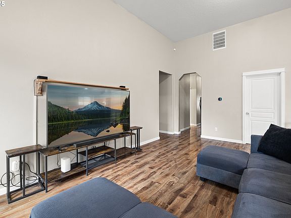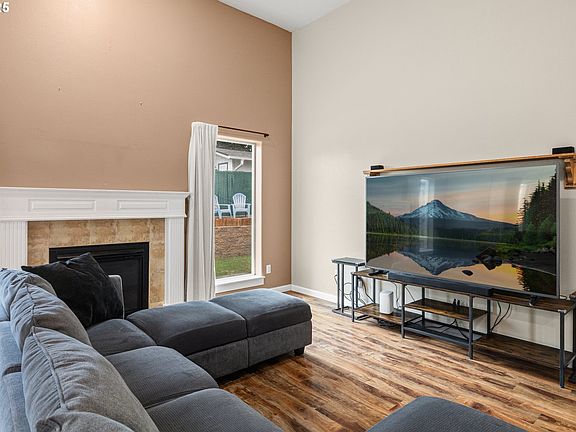 This inviting, well-maintained one-level home in a quiet St. Helens neighborhood is the perfect starter home. Featuring vaulted ceilings, open concept living spaces, cozy gas fireplace and warm wood flooring it is ideal for entertaining. The primary en suite offers a full bathroom with double sinks, and a walk-in closet and a huge bonus double closet. A glass slider from the dining room leads to the fenced, multi-tiered backyard with a patio and built-in firepit. Over-sized double garage with storage racks included. St Helens offers small-town living with shops, dining, and community events, along with easy access to Portland and the coast. Move-in ready and all appliances are included. Welcome home!