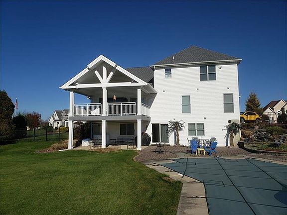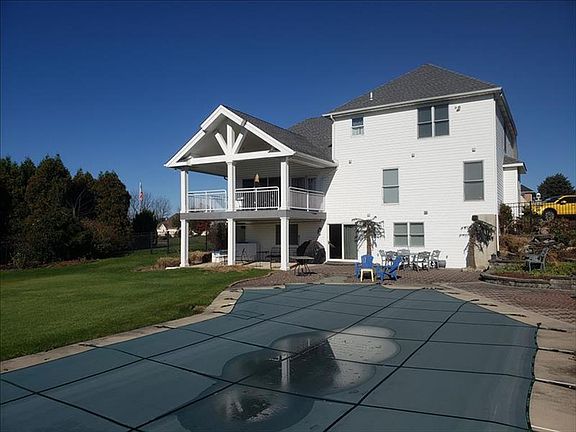 Contemporary home with open concept * Formal dining room with tray ceiling and circle top window * Open great room with fireplace and kitchen with vaulted ceilings, breakfast nook & bar counter top * 1st floor master suite with double closets, master bath with his and her sinks, shower & separate tub * 2nd floor has an office/den and 2 additional bedrooms, the 4th bedroom is a loft * Lower level great room with 1/2 bath, wet bar & walk out to an in-ground pool * Deck with a reverse A roof * Lower lever covered patio and brick pavers * Fish pond * 2 full baths and 2 half baths * Storage areas * 2 car garage * Fully mature landscaped and so much more!