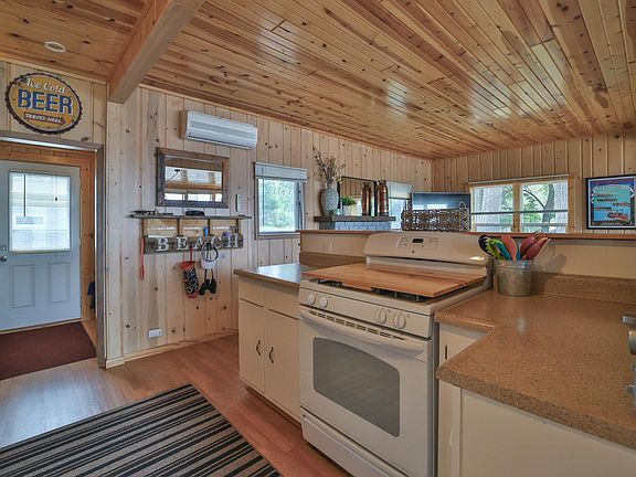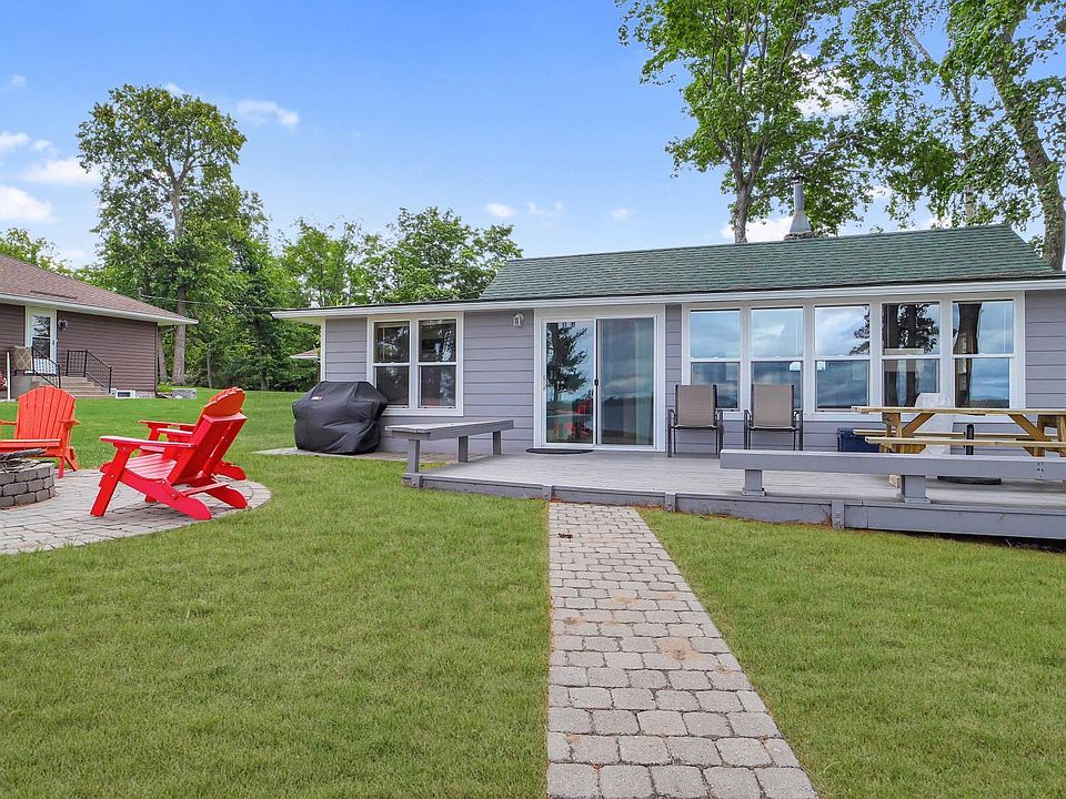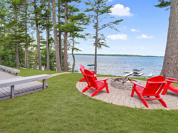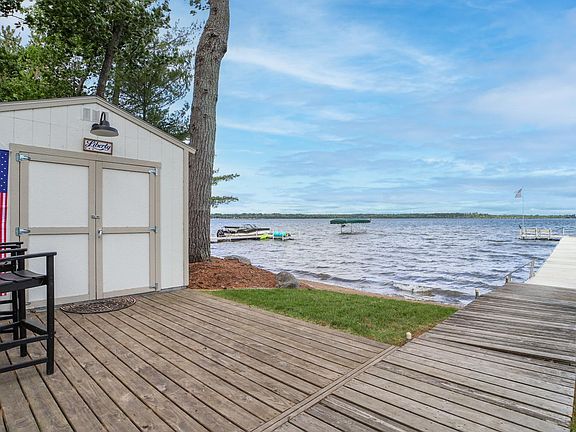 Don't miss this two bedroom Gull Lake Chain Cabin with guest house. Enjoy amazing sunsets on Round Lake. This cabin boasts spectacular sunsets, gradual elevation to 100' of excellent sand shoreline along the "Sunset Strip" and a boat house. You will love the open floor plan, wood burning fireplace, large patio door leads to a spacious lake side deck for entertaining and new steps to the lake installed this past year. Recent updates include new flooring, windows, siding, and professional landscaping. The detached garage was converted to a guest cabin, which features 12x14 bedroom, bath, closet/utility room with laundry and workshop. Property comes fully furnished. Set up a showing today!